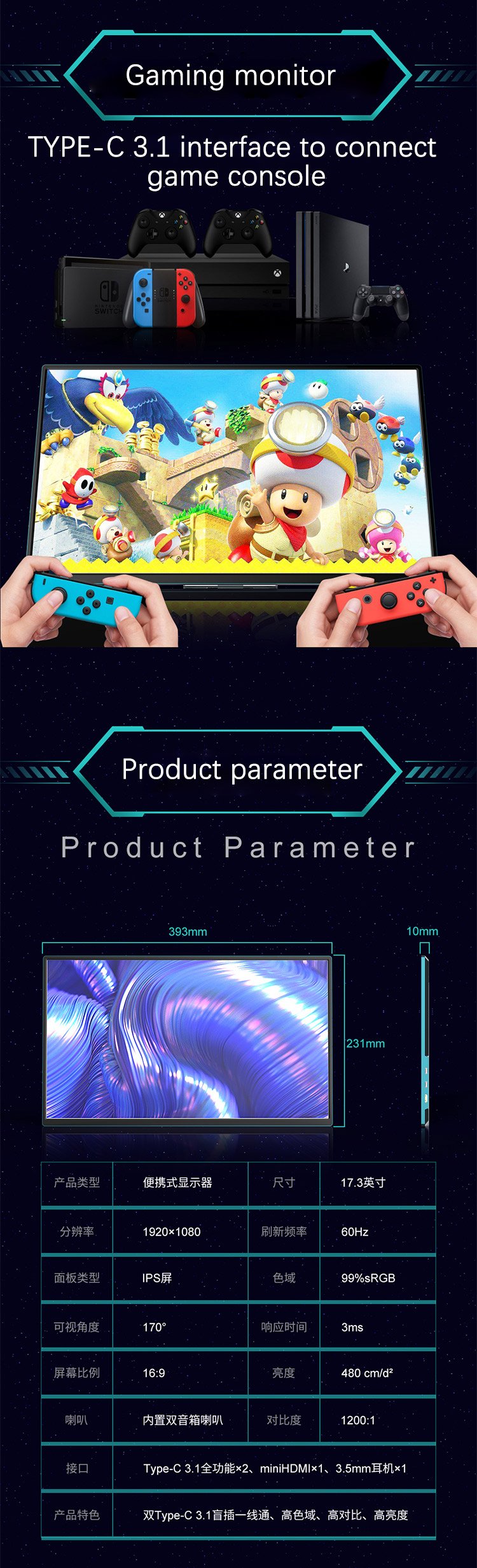 | SWITCH | Mini HDMI to HDMI Type-C one-line direct connection |