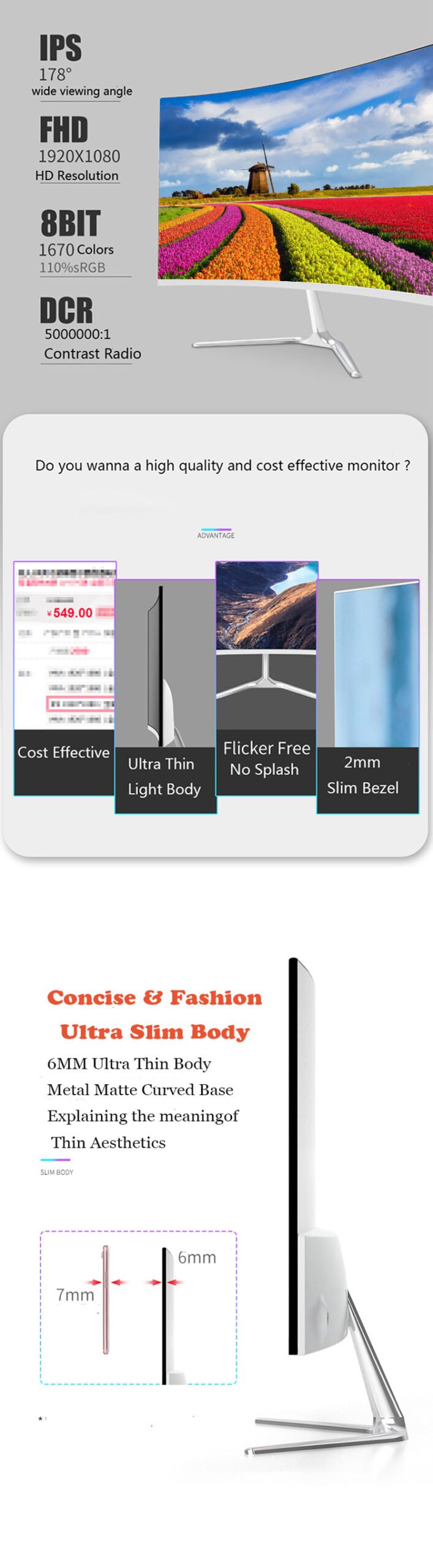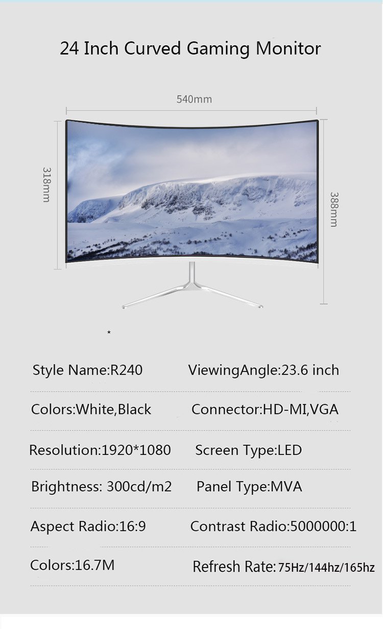 | Panel | Name | 24 inch curved LED monitor | |||||||