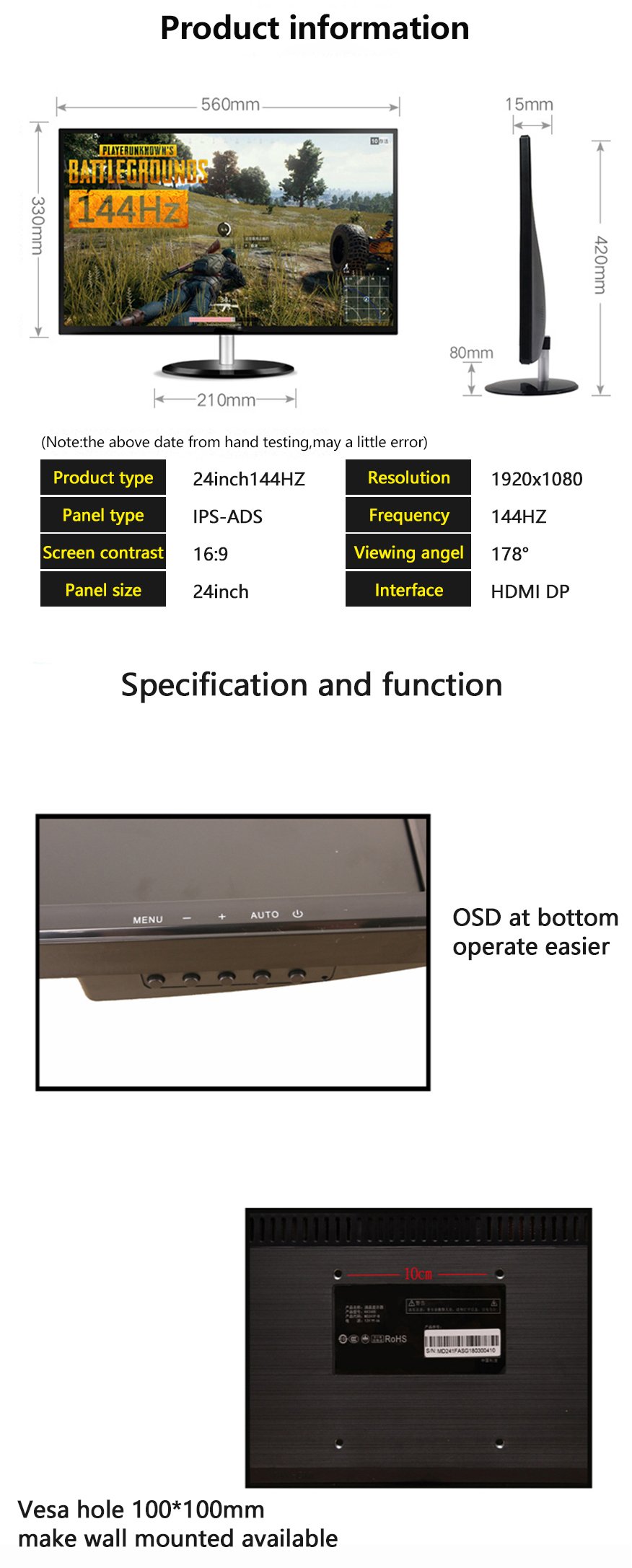 | Resolution(Typ.) | 1920*1080 @144HZ | ||