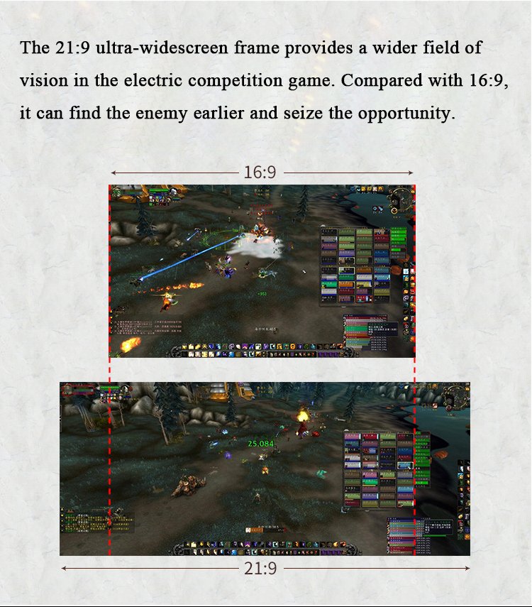 high contrast 16:9 display ratio monitor 34 inch gaming for immersive effect esport